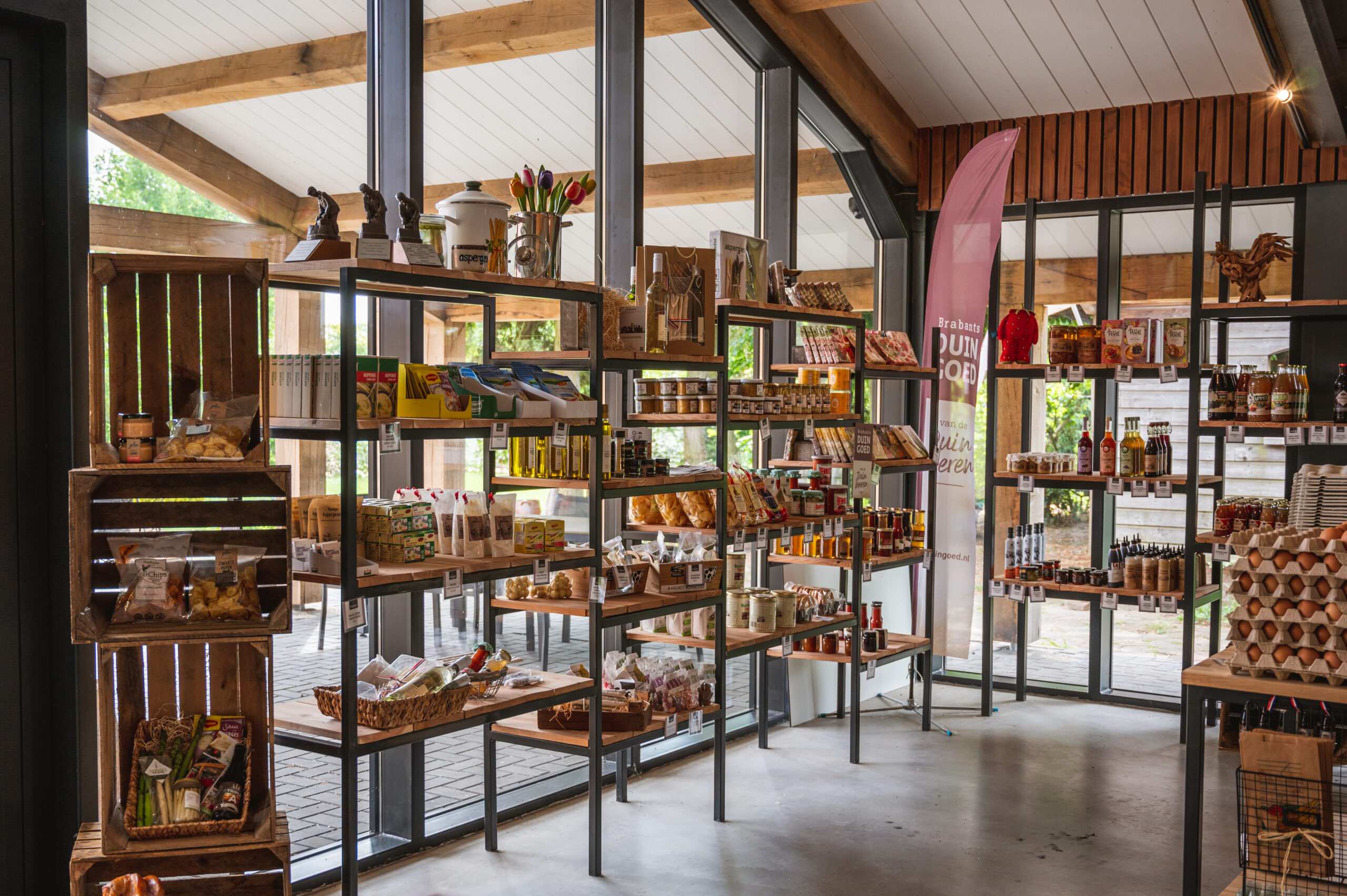 In de winkel vind je ook allerlei streekproducten van lokale Duinboeren, heerlijke aardbeien, eieren, roomboter, verse Tijn-saus en zelfs boerderij-ijs voor de perfecte afsluiting van je aspergemaaltijd. En voor een smakelijk cadeau is er altijd wel een mooi aspergepakket te maken.