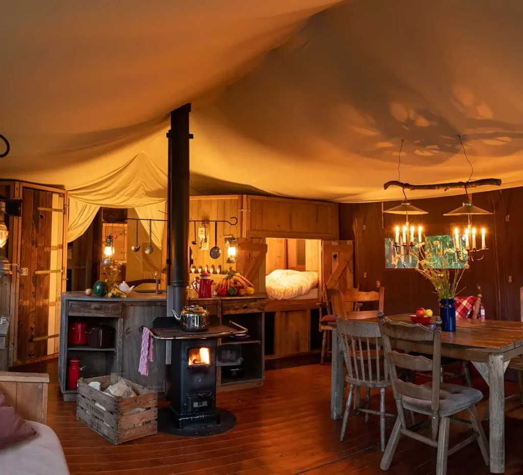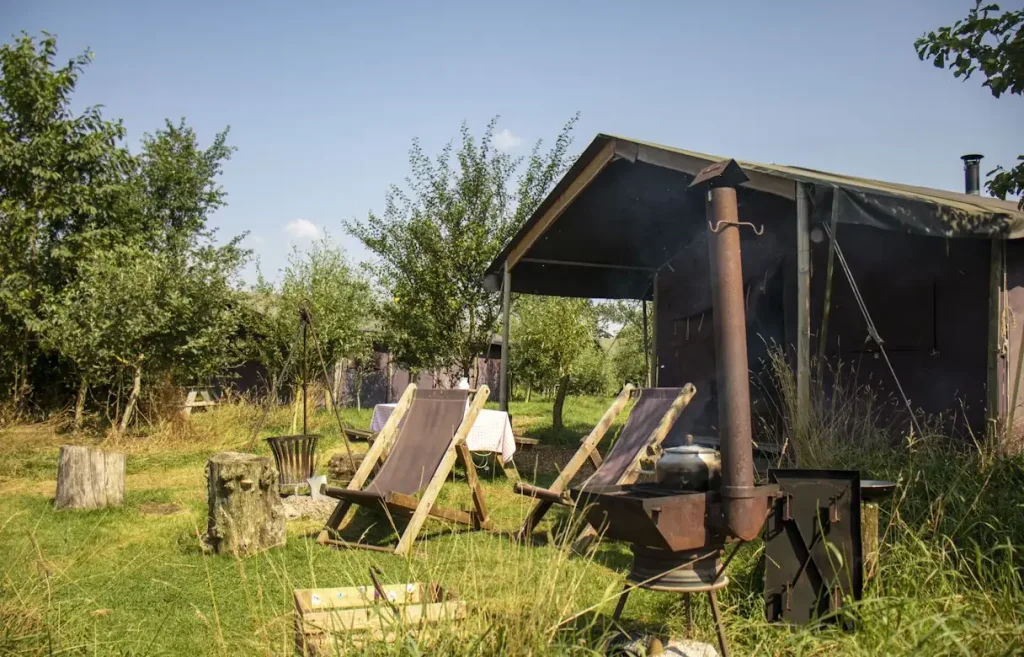 Verblijf in een van de vijf comfortabele tenthuisjes, elk uitgerust met een houtkachel, privé douche, en zonder elektriciteit voor een echte off-grid ervaring. Elk tenthuisje biedt rust, ruimte, en een prachtig uitzicht op de weilanden en de Nieuwkoopse Plassen. Ontsnap aan de drukte en geniet van de landelijke stilte.