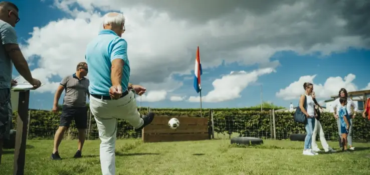 Boerenvoetgolf is een uniek spel waarbij je in zo min mogelijk beurten een voetbal in de holes schiet met je voet. Het spel is laagdrempelig en geschikt voor alle leeftijden. Op onze boerderij vind je 18 unieke holes, elk met hun eigen obstakels en regels. Dit maakt Boerenvoetgolf de perfecte activiteit voor een gezellige dag buiten.